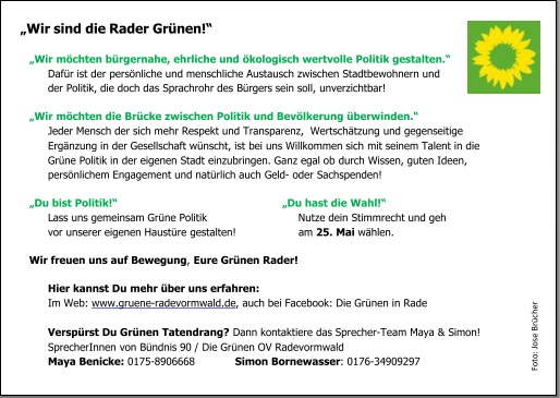 Dafür haben wir uns als Ortsverband Radevormwald der Grünen bedankt: